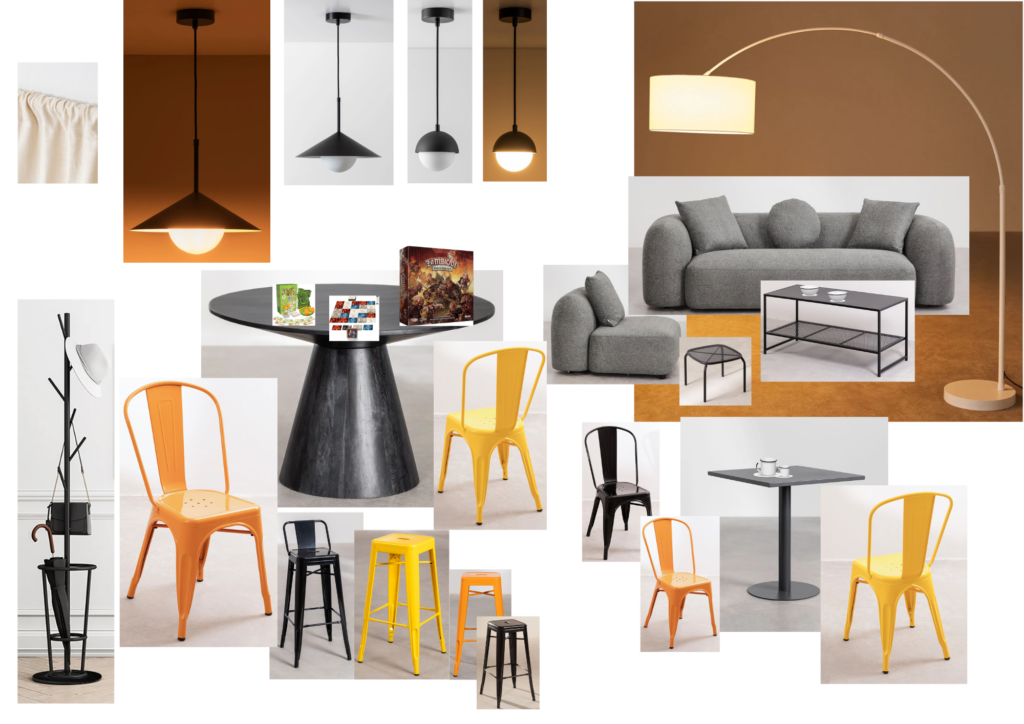 Au delà du style industriel qu’on retrouve fréquemment dans les bars à jeux, j’ai souhaité apporter de la chaleur par les couleurs de la marque en couplant praticité et confort.